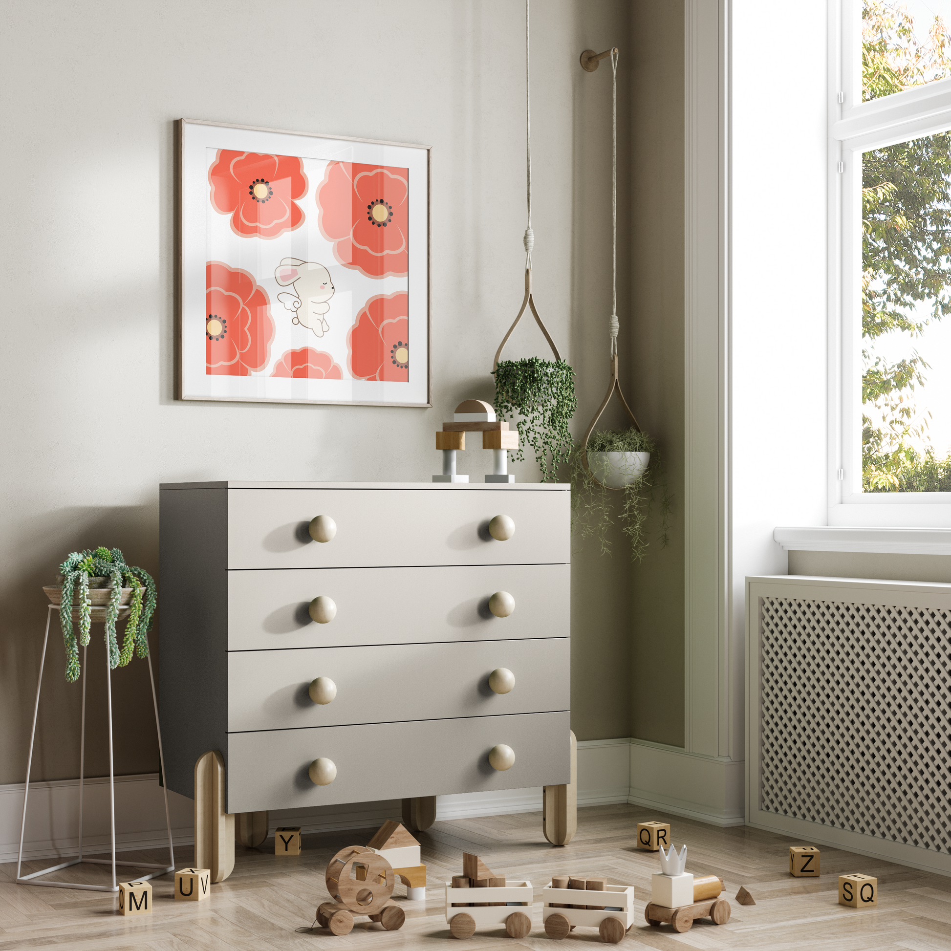 Lumi loves playing and exploring the giant flowers of Eden. Often times the little bunny falls asleep surrounded by the beautifully scented red poppies.